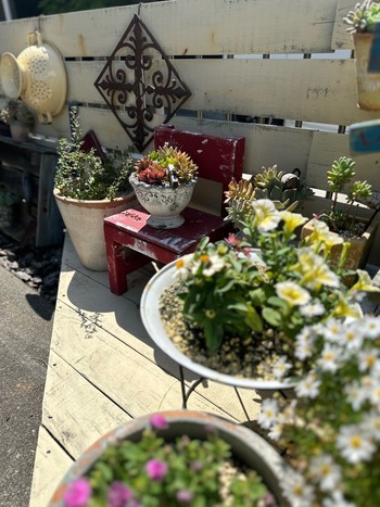 ご訪問ありがとうございますっanさんですっ以前自宅レッスンでも受講者様に作ってもらったミニチェアずっとアトリエに置いていたんですが外に出してみ···